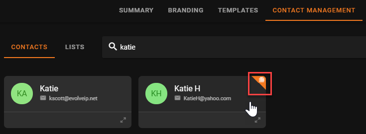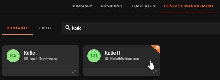 - Search Contacts - search for individual contacts or Contact lists when viewing the list tab