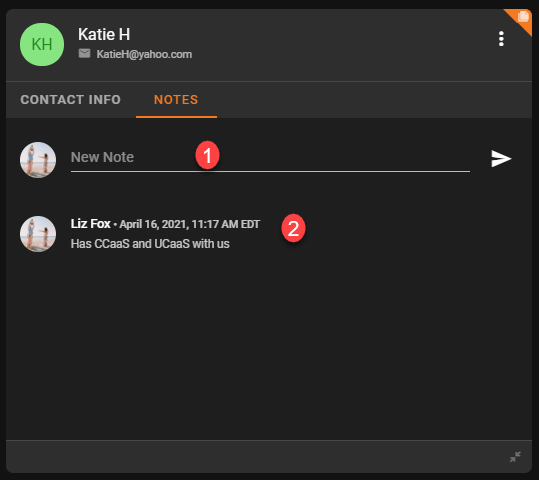 - If the contact has the following icon in the upper right-hand corner of the contact card, it indicates that the contact has Notes that have been added to the contact