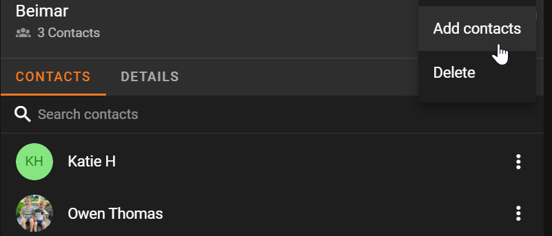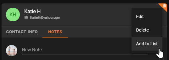 - Select the action Menu to Edit, Delete or add the contact to a List
