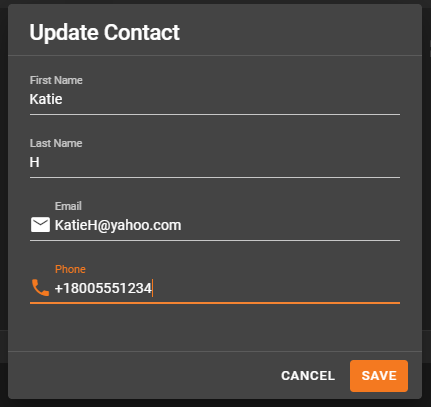 - Select Edit to edit the contact information. Currently, the contact's Name, Email, and Phone number can be edited within the window. Select Save.