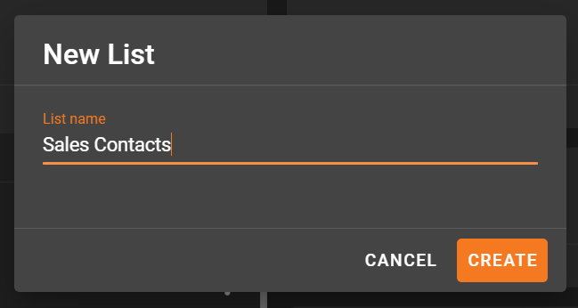 - Once created a success message will appear indicating the list has been created successfully. You will see the new List Card in the List View to begin editing and adding contacts to the list.