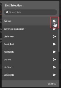 - The List selection window will open. You can search or scroll to find the list you wish to add the agent. Select the arrow next to the list name you wish to add the agent to. Currently, you can only add a contact to one list at a time.