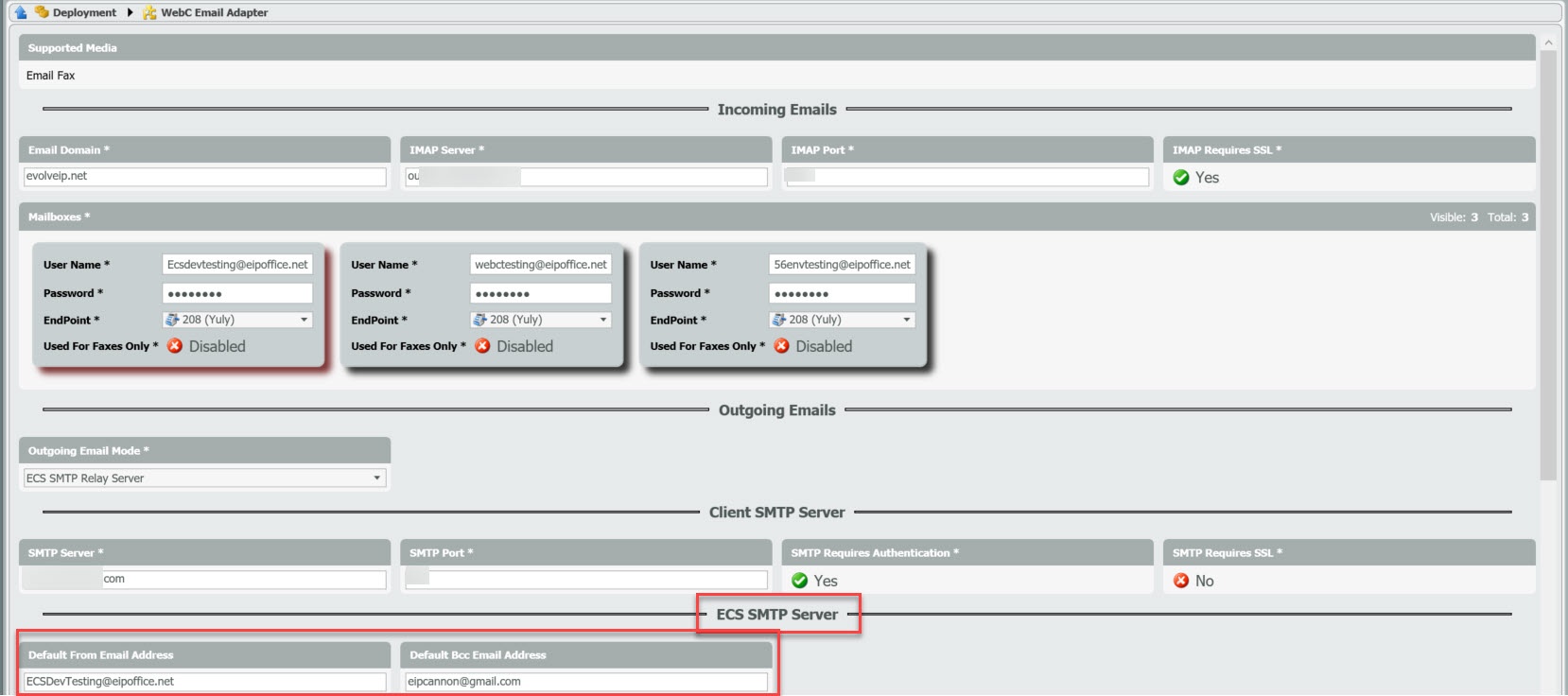 | Contact Center Level Email SMTP Settings | BP Level SMTP Settings |
