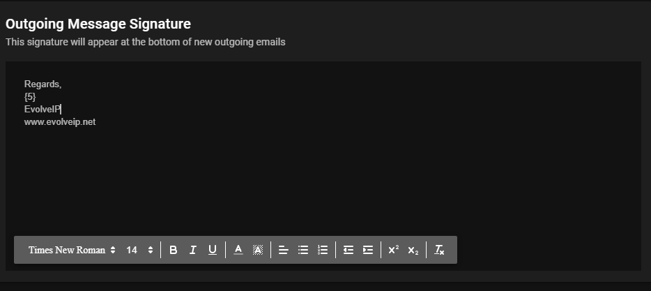 - Fill out the Outgoing Message Signature that will be used for new outgoing email interactions