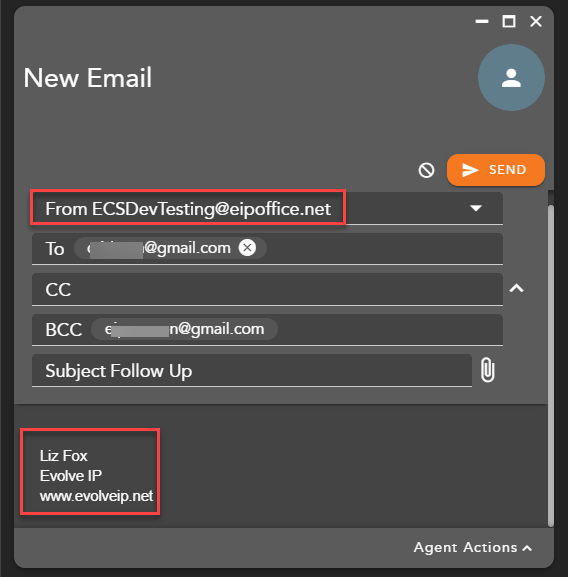 | Admin Configured Outgoing Message Signature for the Default Email Address | Agent Initiated Outgoing Email utilizing Default Email Address |