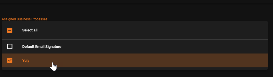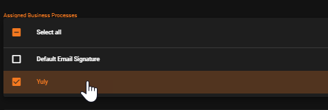 - Once the signature has been created, select the Business Process(es) you wish to apply the signature