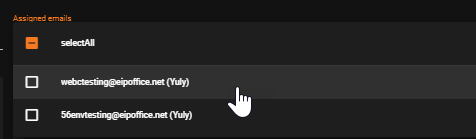 - Assigned Emails shows the configured default email address and delineates it as such by labeling it (Default)