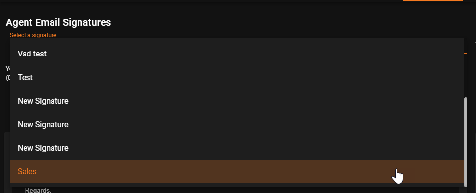 - Agent Email Signatures - view the current available signatures, which BPs or email addresses they are assigned and create a new email signature