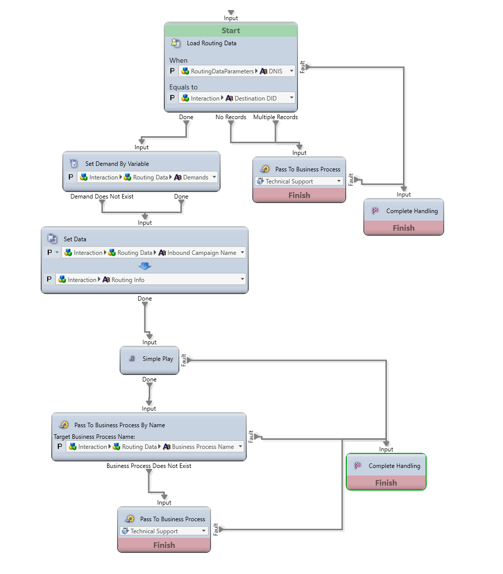 The combination of the Routing Data with the Interaction Handling Flow creates a powerful tool to build endless routing possibilities based on a very simple set of activities. For customers with many variations of similar interaction flows the Routing Data is an invaluable tool.