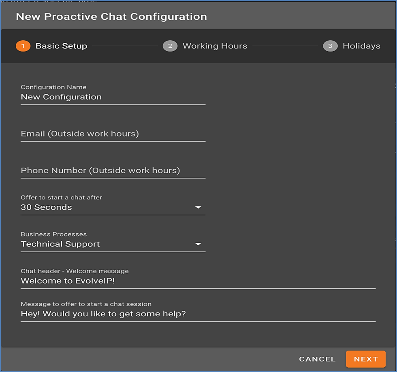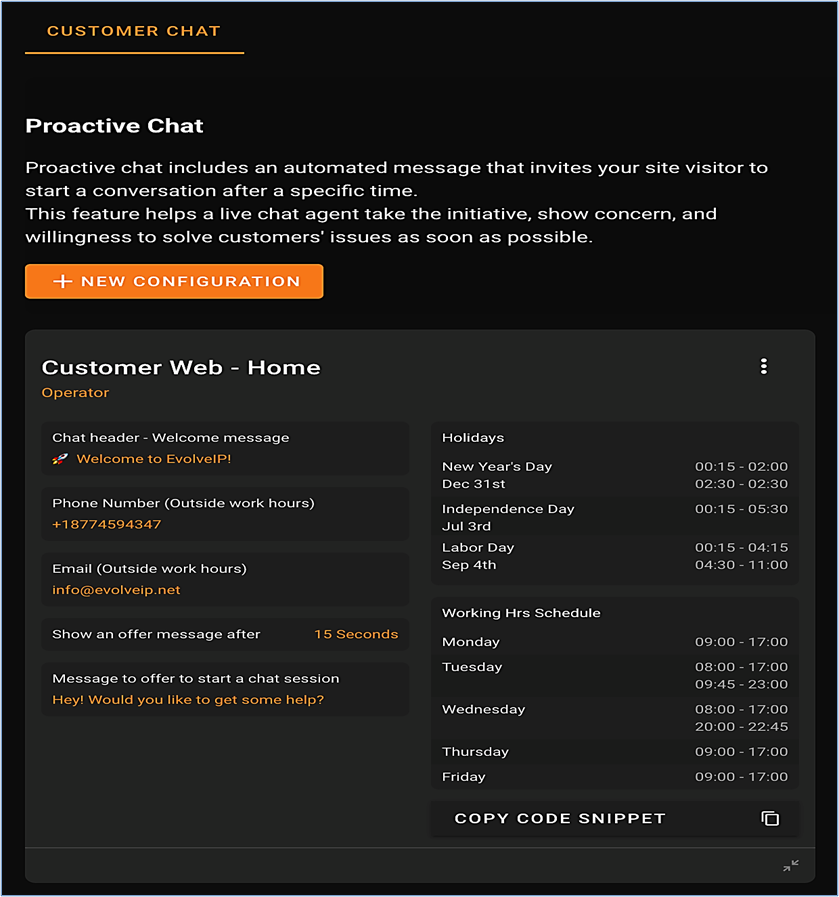 - Next time the same customer tries to start a chat it will use the updated configuration (if any).