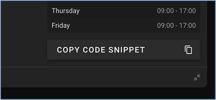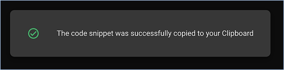 - Click on "Copy Code Snippet", you will then see a confirmation message indicating that the code was successfully copied to your clipboard.