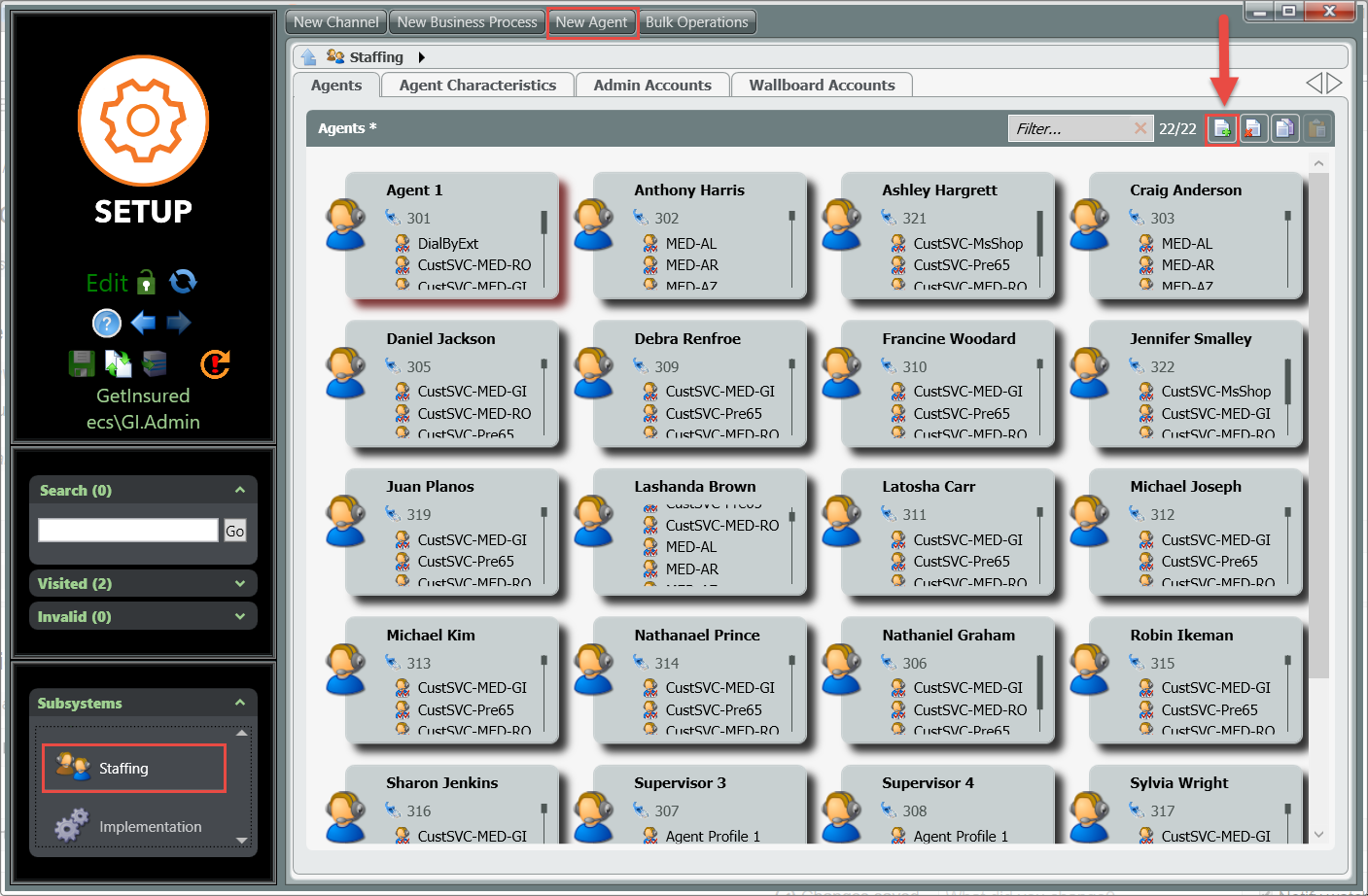 - Navigate to Staff through the subsystem and click on the Add icon or New Agent