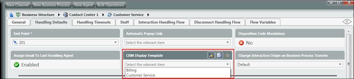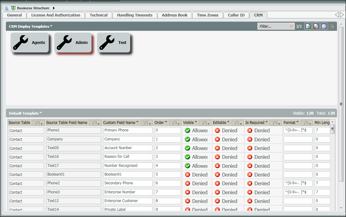 CRM display templates determine what contact information is exposed and can be edited by the agent. Each Business Process can have a unique display template.