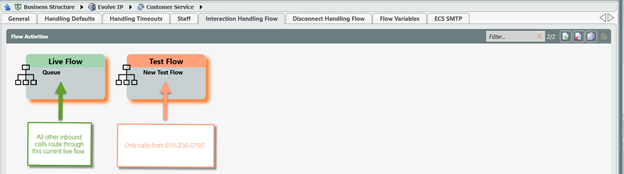 Test flow origins are utilized while building or testing new Interaction Handling Flows. Applying this functionality provides a way to test new design ideas without impacting live operations. This section indicates which specific origin numbers will route to configured test flows rather than live flows.