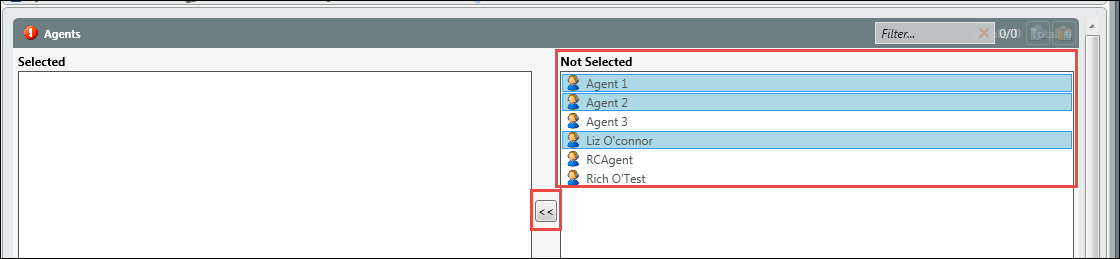 To assign or remove an agent(s) simply select the agent(s) and select the appropriate arrow to move the agent(s) around.