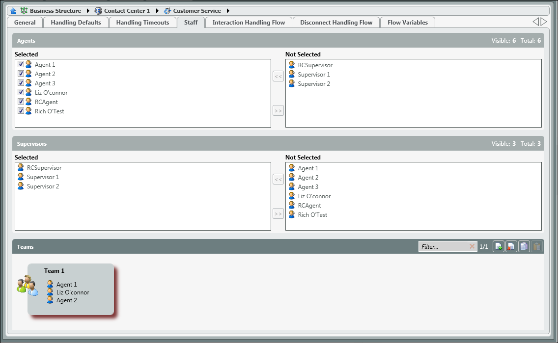 In the example above, Team 1 is made up of three agents. A team can be made up of a minimum of two agents and the maximum total number of agents assigned to the BP. There can also be more than one team per BP.