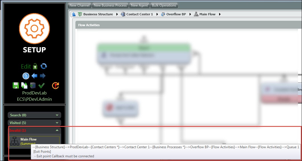The Setup client now performs error checking before every deployment. The validate button must be selected first before deploying any changes. This helps to ensure that there are no errors in the changes of the setup before rolling out to production. It is strongly suggested to validate changes and correct any errors before saving as well.