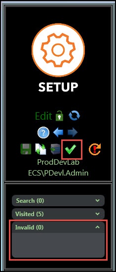 When making any changes within the Setup client, the validate icon will become highlighted.