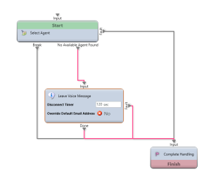 Usually, the flow proposes to the user to leave a message when no available agent is found within the time allowed for agent waiting. Any other scenarios when this activity will be used are also possible.