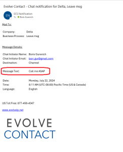 Chat email is very similar to the voice email. The main difference between them is that voice mail contains the message as an attachment, while chat mail just contains the message the user left in its body: