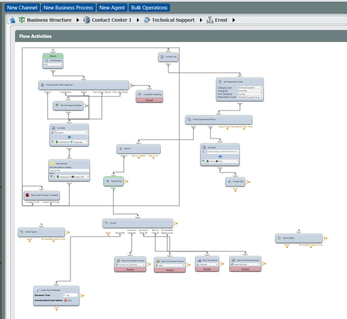 All flows need to end in a 'clean' way, meaning all exitpoints at some point need to be connected to either another 'regular' activity, or a 'Complete Handling' activity.