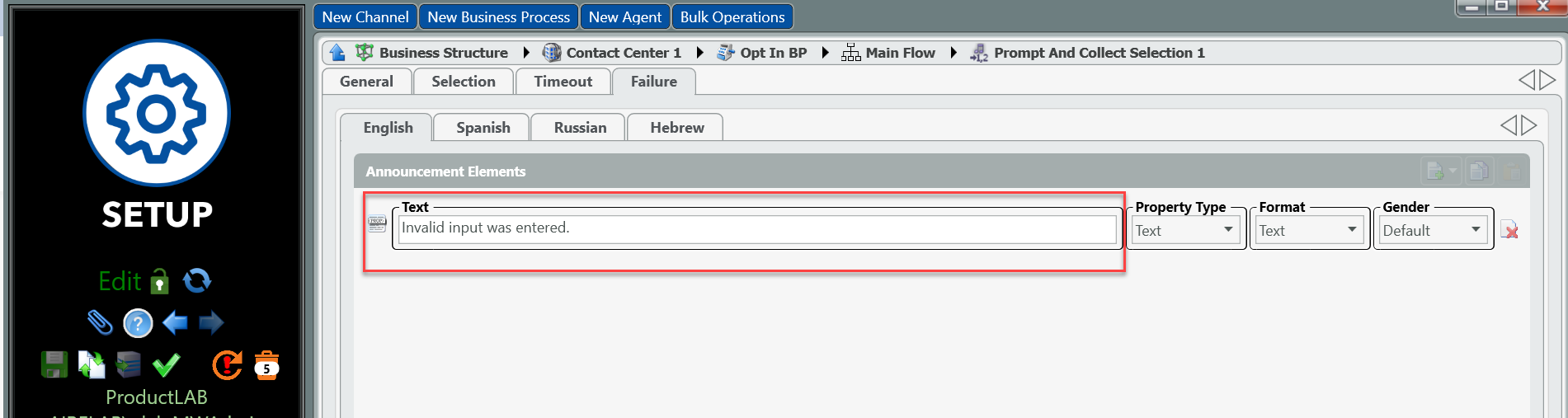 The content entered in this section is the message that will play if the customer enters an invalid selection.