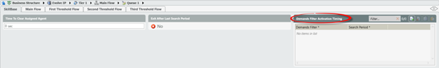 Once Demand Filters are configured, each Queue activity within the Business Process > Interaction Handling Flow requires the Demand Filter Activation Timing configuration.