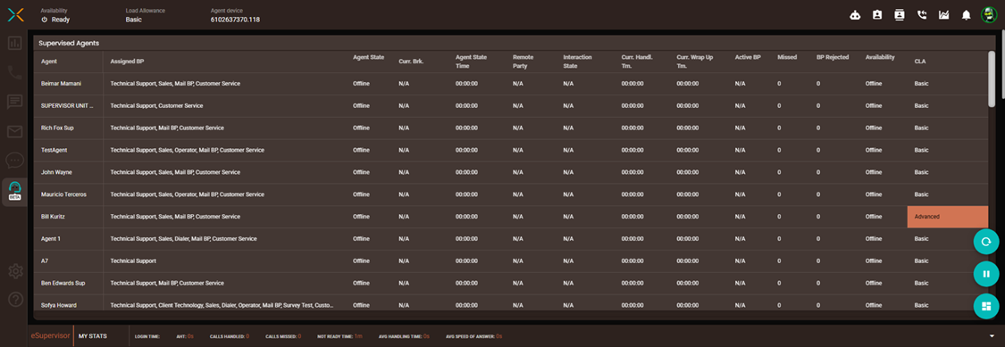 - eSupervisor - Supervised Agents - Default set of KPIs.