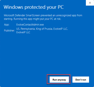 Finally, this dialog will appear. Select "Run anyway" and the client application will launch.