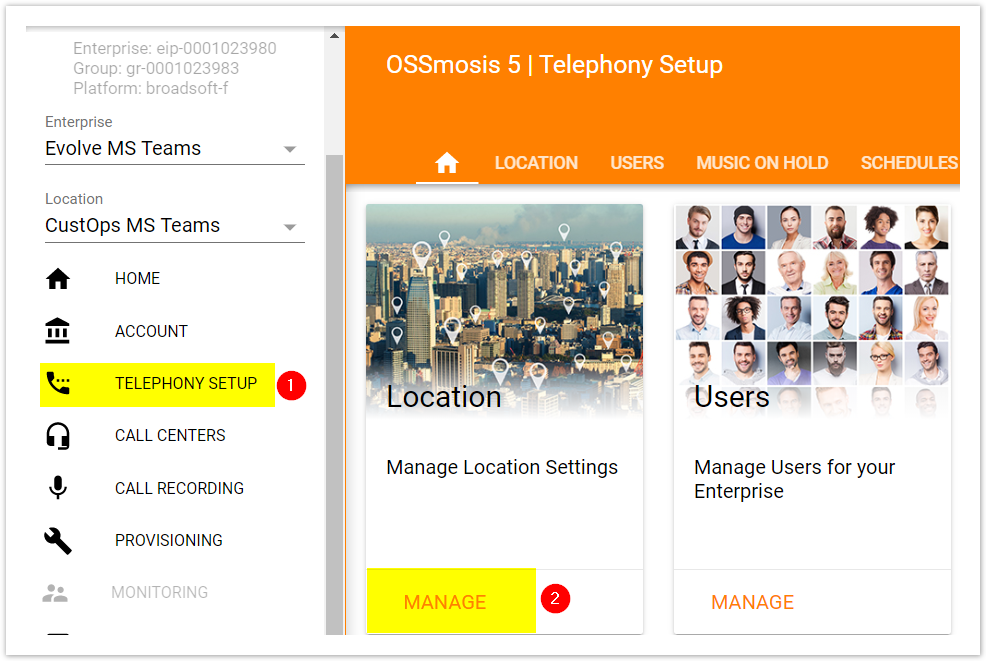 Step 1: Go to OSSmosis Portal and select Telephony Setup