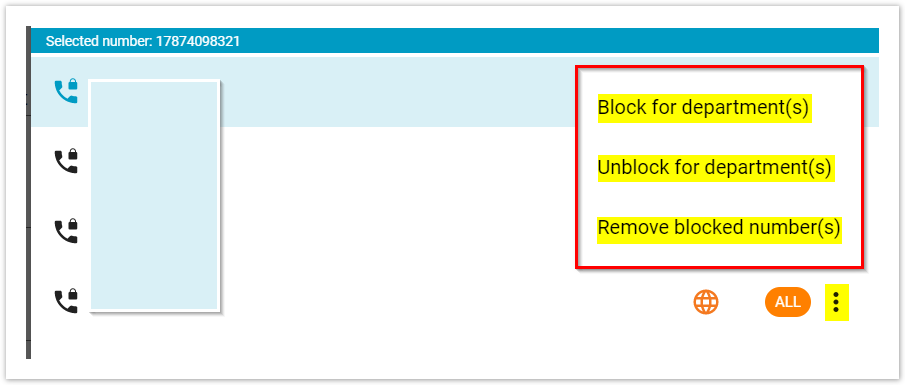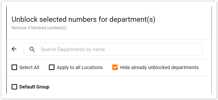 2) Unblock for Department(s): Unblock a number from one or more departments